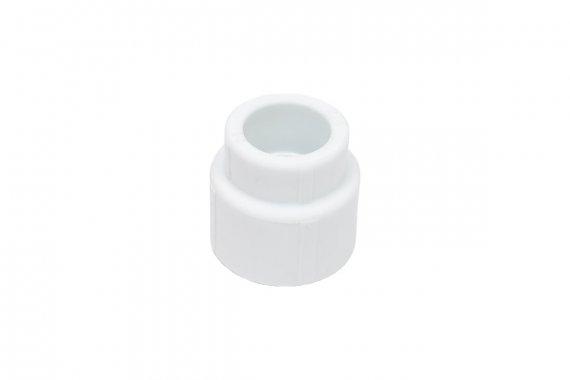 Полипропиленовый фитинг. Предназначен для соединения двух полипропиленовых труб разного диаметра. Производится методом литья под давлением.