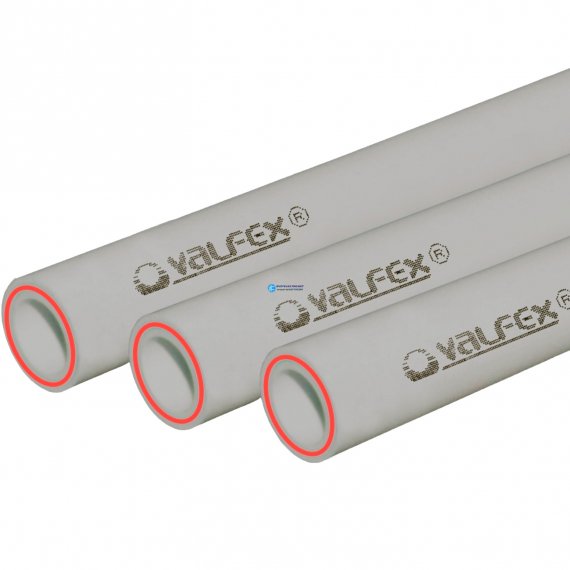Трубы кольцевого сечения из статистического сополимера полипропилена PP-R трехслойные стеклонаполненные (средний слой армирован стекловолокном) (PP-R/PP-R GF/ PP-R) ТМ VALFEX® предназначены для транспортирования воды с температурой до 70°С для хозяйственно-питьевого водоснабжения, низкотемпературного отопления, высокотемпературного отопления отопительными приборами с температурой 90°С, а также для транспортирования других жидких сред, к которым материал труб химически стоек.