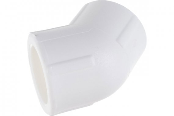 Полипропиленовый фитинг. Используется для поворота трубопровода на 45°. Производится методом литья под давлением.