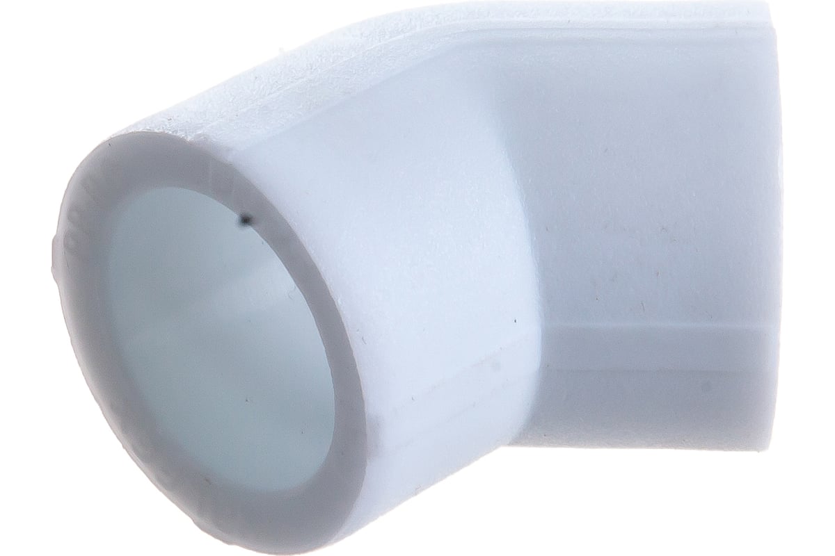 Полипропиленовый фитинг. Используется для поворота трубопровода на 45°. Производится методом литья под давлением.