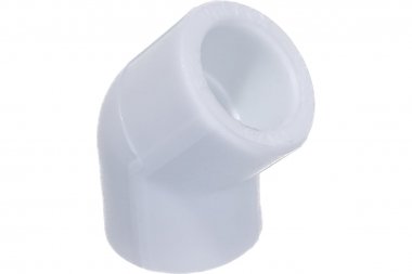 Полипропиленовый фитинг. Используется для поворота трубопровода на 45°. Производится методом литья под давлением.