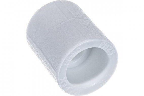 Полипропиленовый фитинг. Используется для соединения между собой двух труб одинакового диаметра. Производится методом литья под давлением.