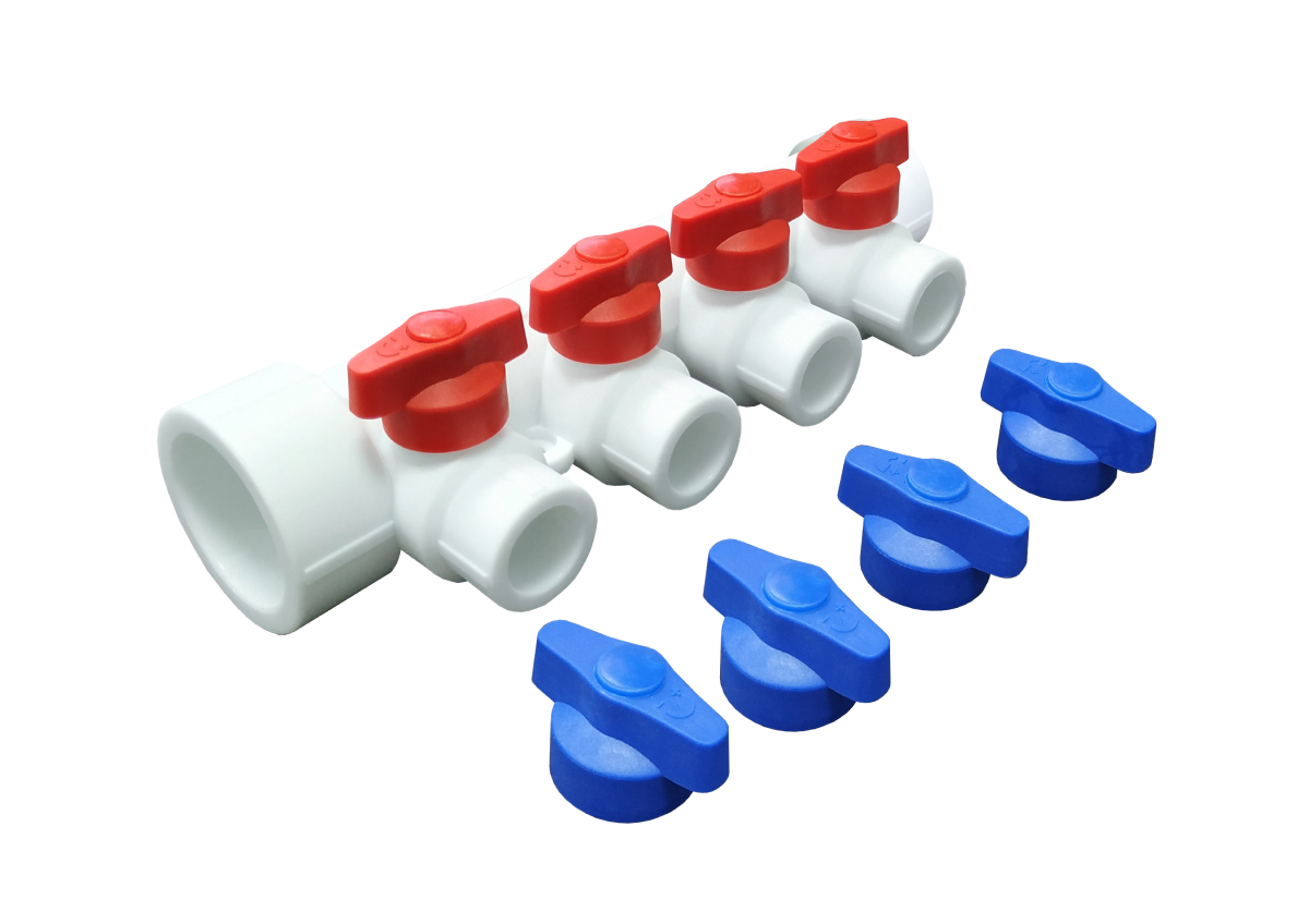 Коллектор универсальный с отсечными кранами 32х20 на 2 выхода (12/1) (Valfex) СЕРЫЙ "ВАЛФ-РУС"
