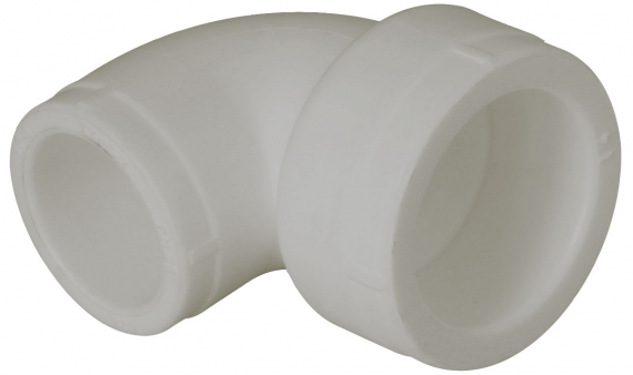 Полипропиленовый фитинг. Используется для поворота трубопровода на 90°. Производится методом литья под давлением.