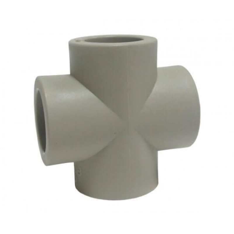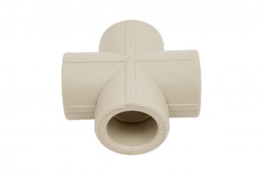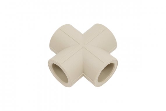 Полипропиленовый фитинг. Представляет собой соединительную деталь для соединения четырех труб из полипропилена одного диаметра в одной плоскости. Производится методом литья под давлением.