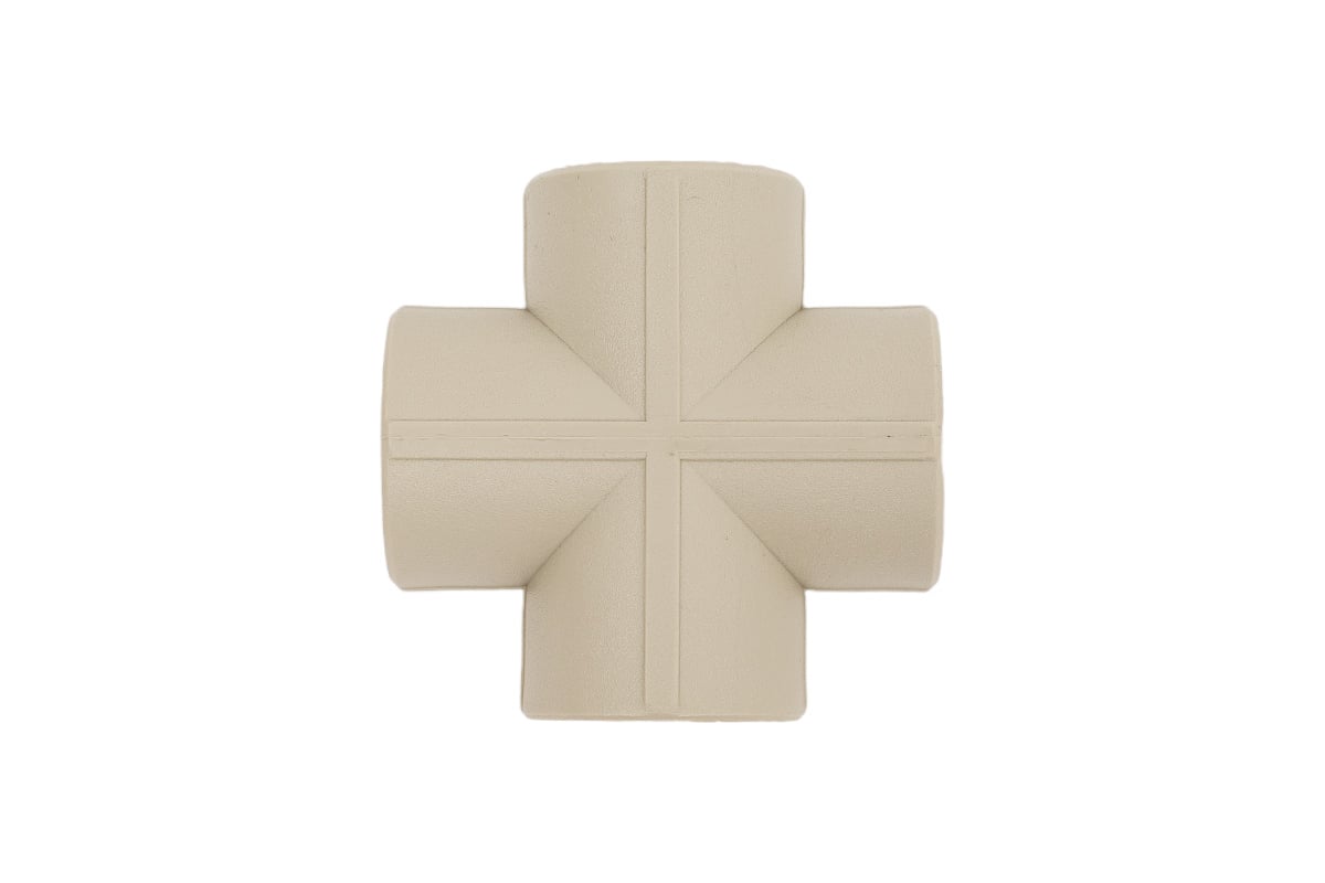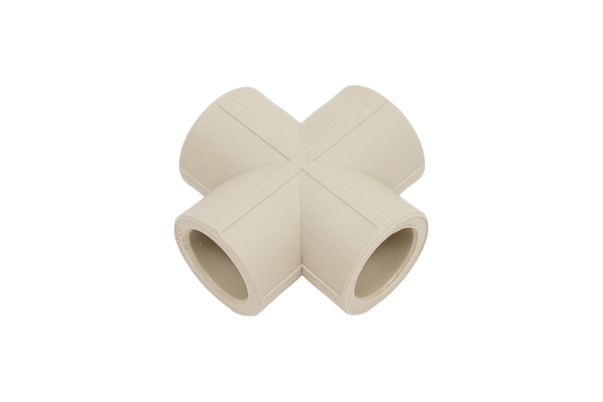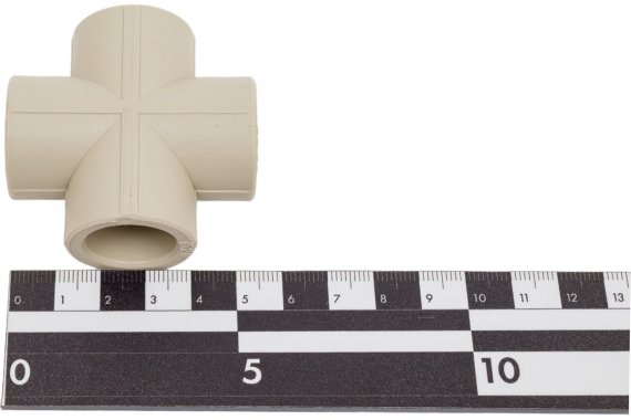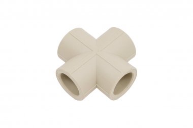 Полипропиленовый фитинг. Представляет собой соединительную деталь для соединения четырех труб из полипропилена одного диаметра в одной плоскости. Производится методом литья под давлением.