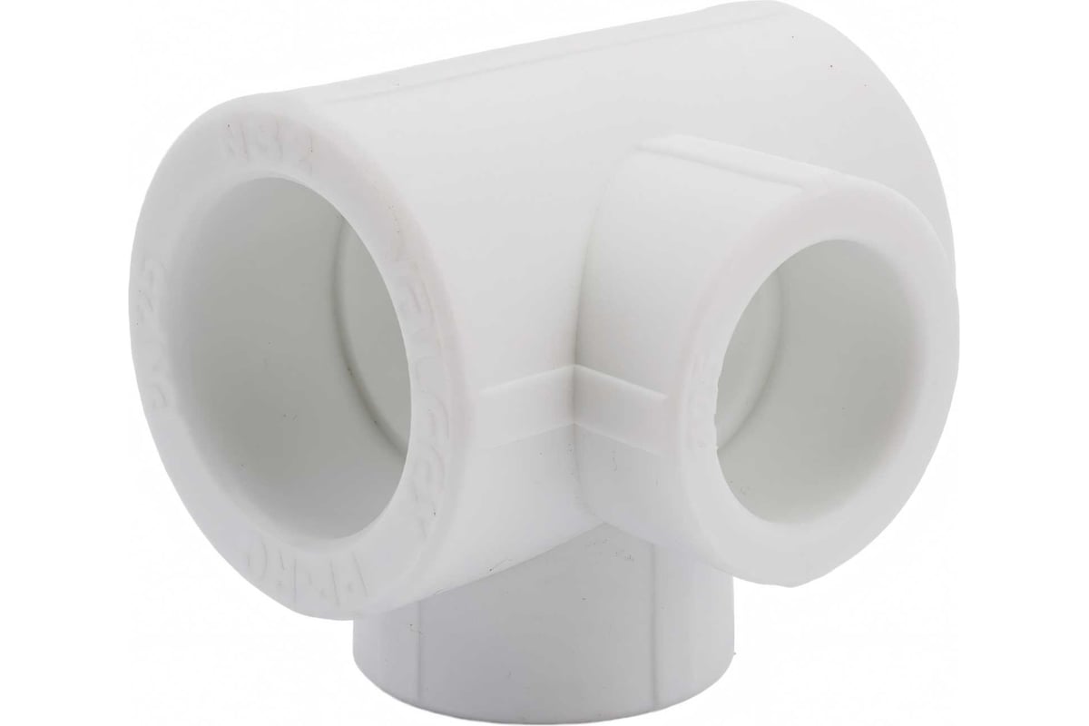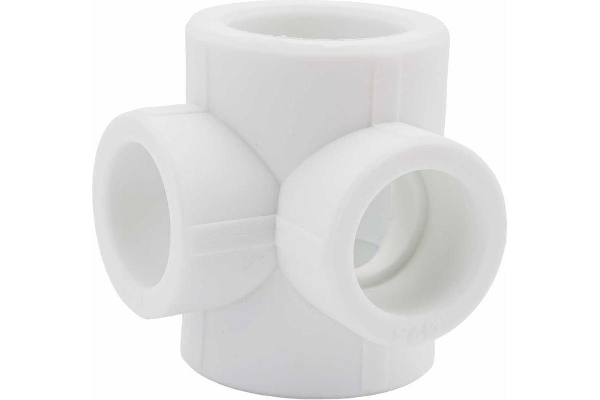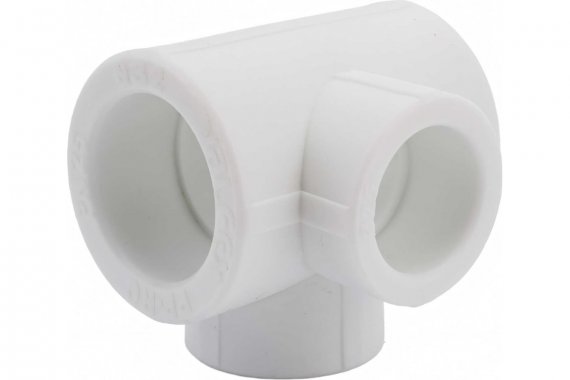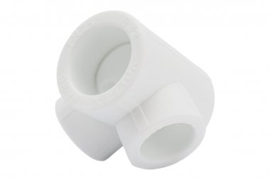 Полипропиленовый фитинг. Позволяет выполнять присоединение трубопроводов в двух взаимоперпендикулярных плоскостях труб разного диаметра. Монтаж производится методом раструбной сварки. Свариваемые поверхности – внутренние.