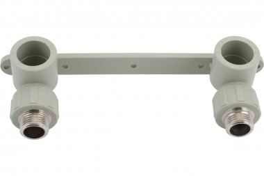 Комплект настенный для смесителя представляет из себя комбинированный полипропиленовый фитинг. Используется для монтажа к трубопроводу и установки смесителя непосредственно на стене. Латунные части производятся методом горячего штампования, пластиковые - методом литья под давлением.