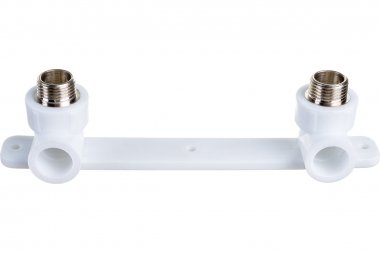 Комплект настенный для смесителя представляет из себя комбинированный полипропиленовый фитинг. Используется для монтажа к трубопроводу и установки смесителя непосредственно на стене. Латунные части производятся методом горячего штампования, пластиковые - методом литья под давлением.