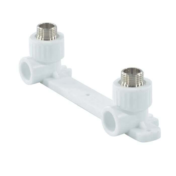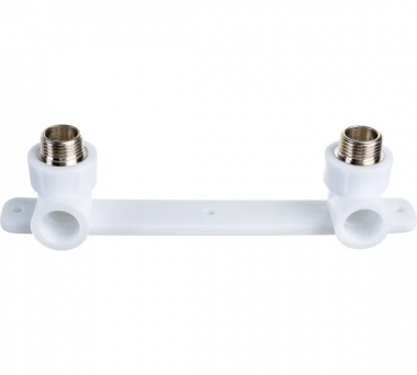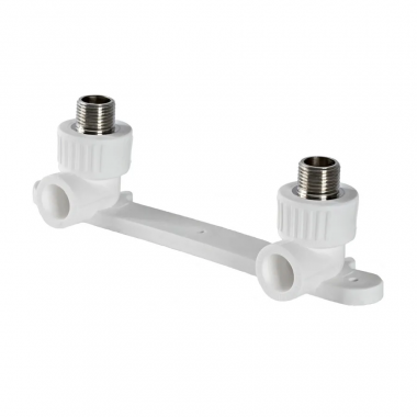 Комплект настенный для смесителя представляет из себя комбинированный полипропиленовый фитинг. Используется для монтажа к трубопроводу и установки смесителя непосредственно на стене. Латунные части производятся методом горячего штампования, пластиковые - методом литья под давлением.