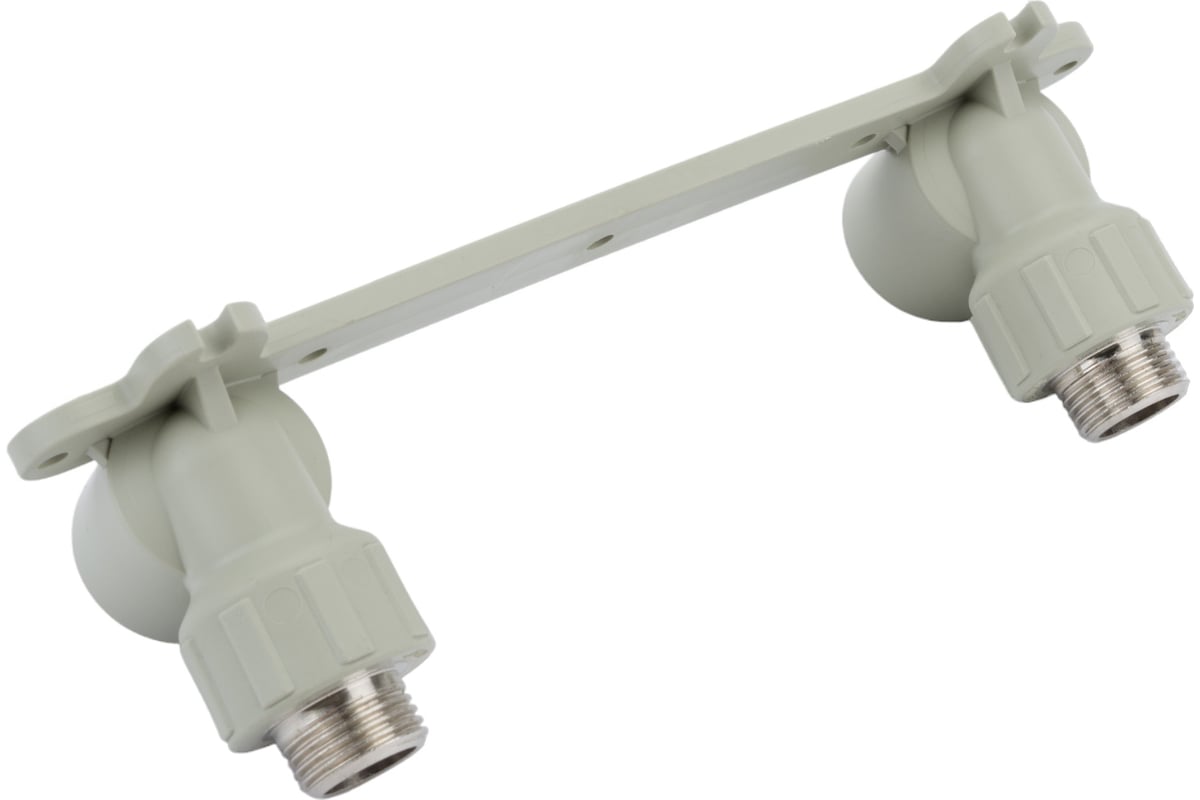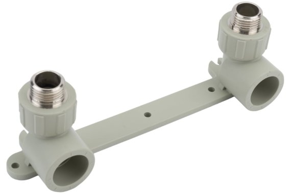 Комплект настенный для смесителя представляет из себя комбинированный полипропиленовый фитинг. Используется для монтажа к трубопроводу и установки смесителя непосредственно на стене. Латунные части производятся методом горячего штампования, пластиковые - методом литья под давлением.