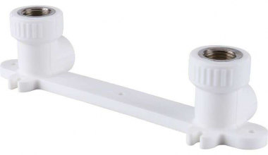 Комплект настенный для смесителя представляет из себя комбинированный полипропиленовый фитинг. Используется для монтажа к трубопроводу и установки смесителя непосредственно на стене. Латунные части производятся методом горячего штампования, пластиковые - методом литья под давлением.
