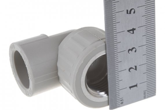 Комбинированный полипропиленовый фитинг. Используется для изменения направления потока и перехода на трубную резьбу. Латунные части производятся методом горячего штампования, пластиковые - методом литья под давлением.