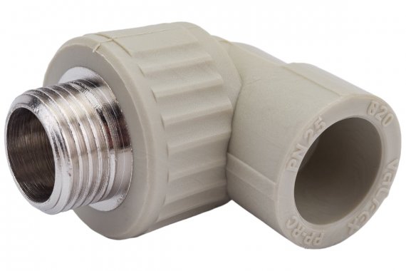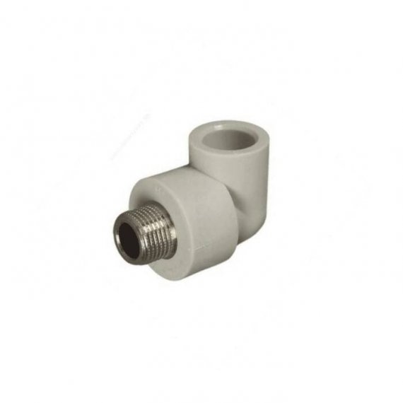 Комбинированный полипропиленовый фитинг. Используется для изменения направления потока и перехода на трубную резьбу. Латунные части производятся методом горячего штампования, пластиковые - методом литья под давлением.