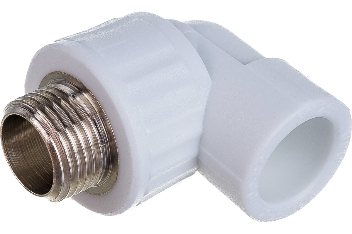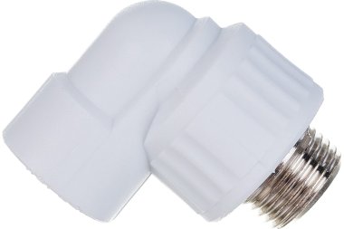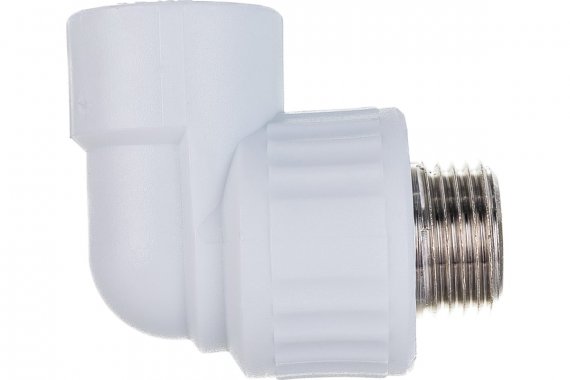 Комбинированный полипропиленовый фитинг. Используется для изменения направления потока и перехода на трубную резьбу. Латунные части производятся методом горячего штампования, пластиковые - методом литья под давлением.