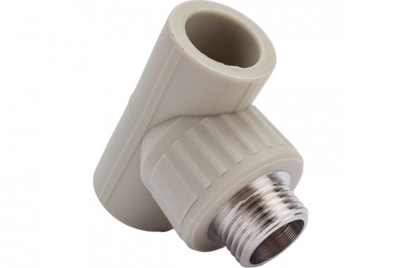 Комбинированный полипропиленовый фитинг. Обеспечивает боковой переход с основной магистрали на дюймовую резьбу в системах водоснабжения и отопления. Латунные части производятся методом горячего штампования, пластиковые - методом литья под давлением.