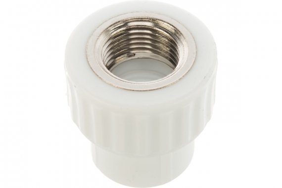 Комбинированный полипропиленовый фитинг используется для соединения полипропиленовой трубы и элемента системы с дюймовым резьбовым соединением. Закладная деталь изготовлена из латуни марки ЛС-59-1. Латунные части производятся методом горячего штампования, пластиковые - методом литья под давлением.