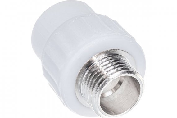 Комбинированный полипропиленовый фитинг используется для соединения полипропиленовой трубы и элемента системы с дюймовым резьбовым соединением. Латунные части производятся методом горячего штампования, пластиковые - методом литья под давлением.