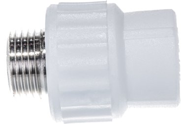 Комбинированный полипропиленовый фитинг используется для соединения полипропиленовой трубы и элемента системы с дюймовым резьбовым соединением. Латунные части производятся методом горячего штампования, пластиковые - методом литья под давлением.