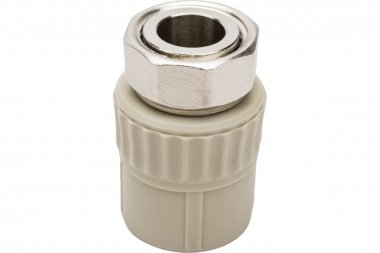 Муфта с накидной гайкой - прямой комбинированный полипропиленовый фитинг предназначен для соединения полипропиленовой трубы и компонента инженерной системы с резьбовым подключением. Монтаж осуществляется с помощью накидной гайки.