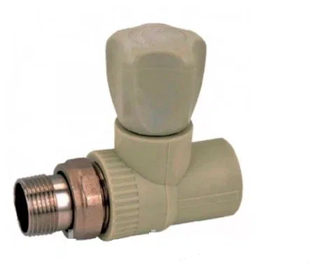 Вентиль для радиатора с полипропиленовым корпусом, прямой. Предназначен для ручной регулировки количества поступающего в отопительный прибор теплоносителя. Вентиль позволяет полностью перекрывать поток. Подключение вентиля к отопительному прибору производится с помощью закладной детали и полусгона, выполненных из латуни с никелевым покрытием. Монтаж полипропиленовой трубы производится раструбной сваркой. Кроме отопления полипропиленовый вентиль можно использовать в водоснабжении, включая питьевое, а также для транспортирования других жидких сред, к которым материал химически стоек