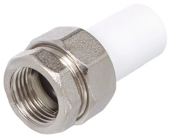 Комбинированный полипропиленовый фитинг представляет собой разъемное соединение с окончанием в виде трубы. Соединение осуществляется через полипропиленовый фитинг. Латунные части производятся методом горячего штампования, пластиковые - методом литья под давлением.