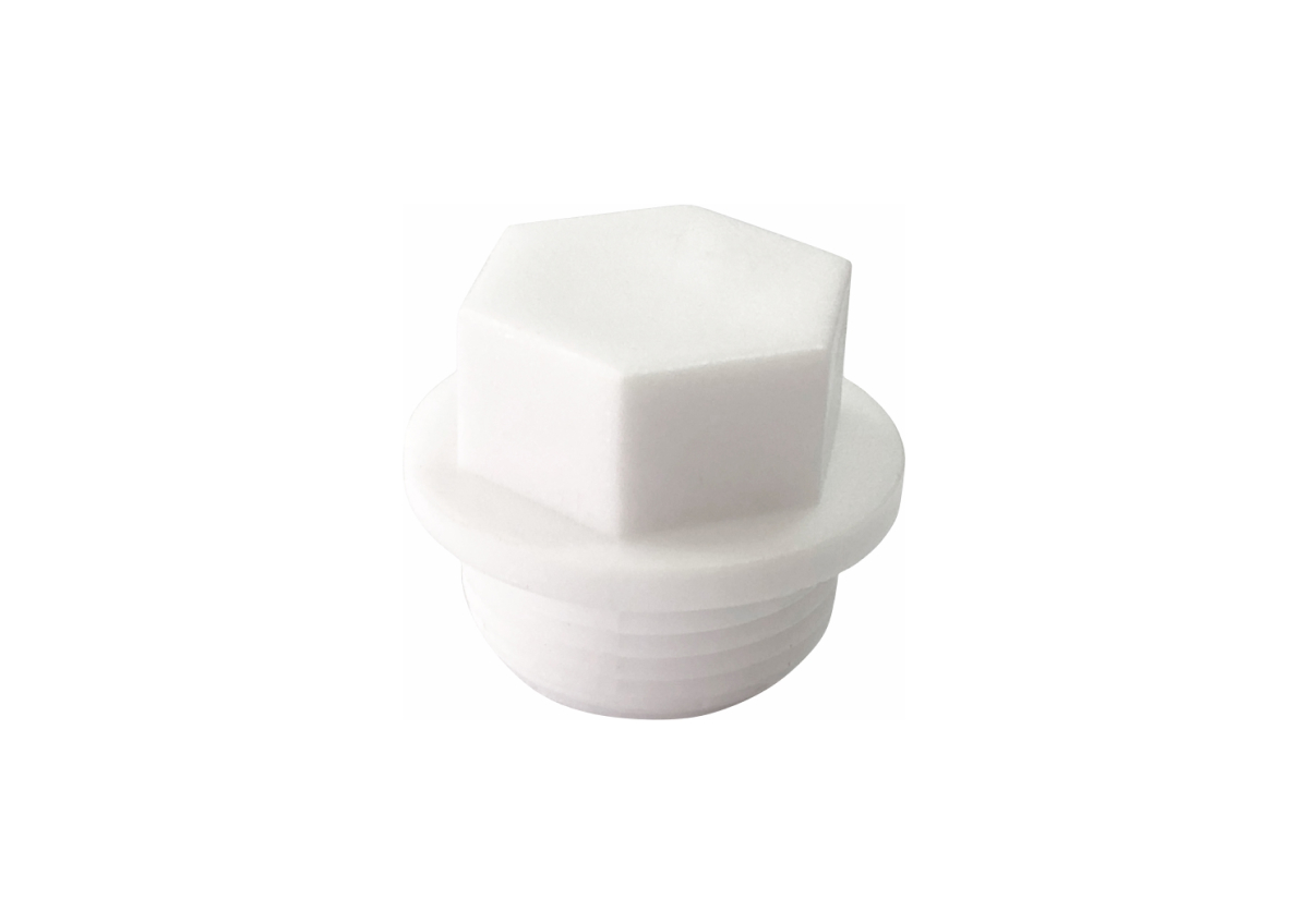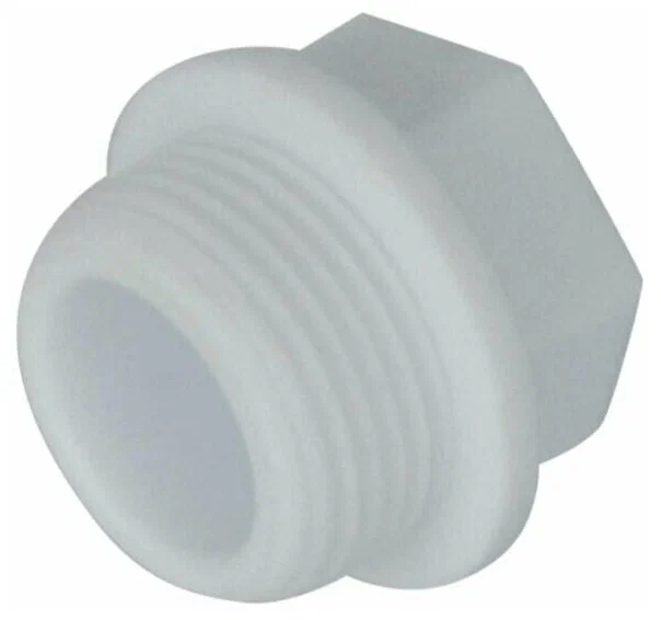 Полипропиленовый фитинг. Подходит как временная заглушка при опрессовке трубопровода, соединяется с трубной резьбой соответствующего диаметра. Производится методом литья под давлением.