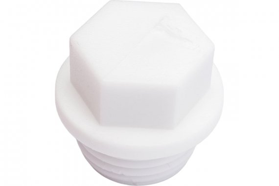 Полипропиленовый фитинг. Подходит как временная заглушка при опрессовке трубопровода, соединяется с трубной резьбой соответствующего диаметра. Производится методом литья под давлением.