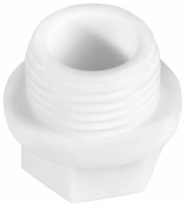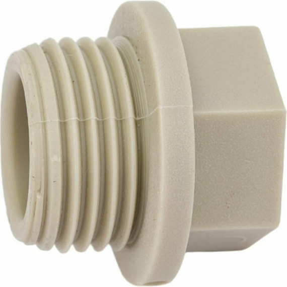 Полипропиленовый фитинг. Подходит как временная заглушка при опрессовке трубопровода, соединяется с трубной резьбой соответствующего диаметра. Производится методом литья под давлением.