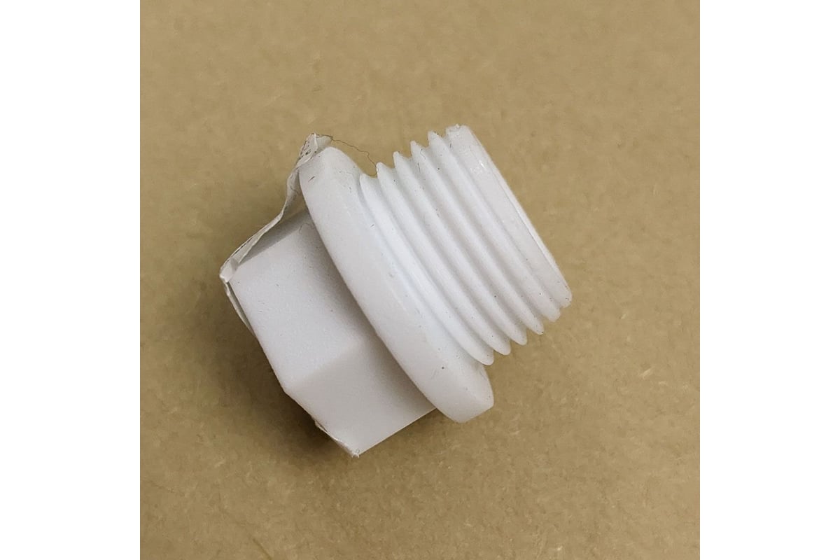 Полипропиленовый фитинг. Подходит как временная заглушка при опрессовке трубопровода, соединяется с трубной резьбой соответствующего диаметра. Производится методом литья под давлением.