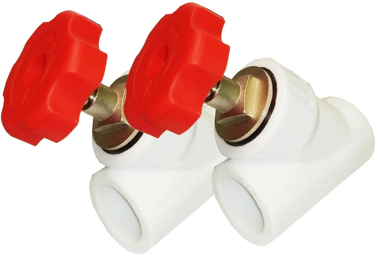 Полипропиленовый вентиль - корпусный фитинг с механизмом регулирования шпиндельного типа, расположенного под углом 45 градусов к направлению потока, позволяет плавно регулировать его в системе. Вращение маховика против часовой стрелки открывает вентиль, а по часовой закрывает.