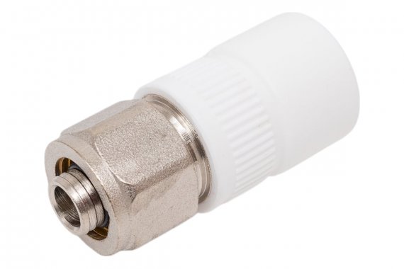 Комбинированная муфта для соединения PPR-PEX труб 20х16 (200/20) (Valfex) БЕЛАЯ К