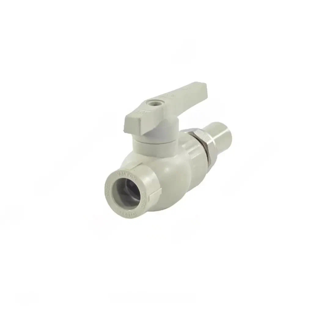 Кран шаровой полнопроходной с односторонним разъемным соединением – вид запорной арматуры, применяющийся для перекрытия потока жидкости в трубах. Разъёмное соединение этого шарового крана позволяет отсоединить от него полипропиленовую трубу с одной стороны. Такое применение может быть удобным в случае если к крану необходимо периодически присоединять другие трубы. Второй конец фитинга монтируется при помощи сварки в монолитное соединение.
