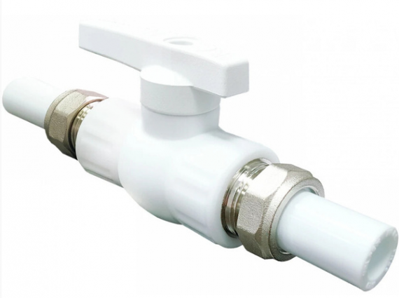 Кран шаровой полнопроходной с двусторонним разъемным соединением – вид запорной арматуры, применяющийся для перекрытия потока жидкости в трубах. Разъёмное соединение позволяет, при необходимости, демонтировать кран и установить на его место прямую муфту, или другой фитинг. Изделие может использоваться несколько раз. Металлические детали в кране надежно соединены с полипропиленовыми, что предотвращает их разбалтывание.
