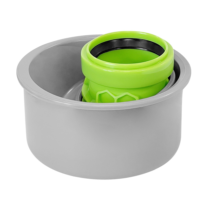 Редукция регулируемая изготовлена из полипропилена. Применяется для систем хозяйственно-бытовой канализации зданий. Редукция регулируемая позволяет соединить трубы d50 мм с системой водоотведения и канализации d110 мм. Соединение между собой и соответствующими элементами осуществляется раструбным способом. Подвижная конструкция позволяет регулировать угол соединения в диапазоне от 3 градусов до 40 градусов.