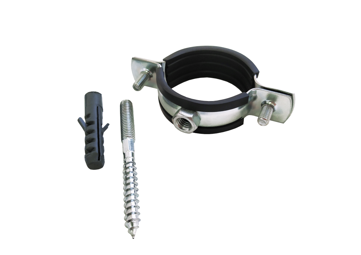 Хомут выполнен из оцинкованной стали с резиновым уплотнителем. В комплект входит шпилька М8*80 и дюбель. Хомут применяется для фиксации на горизонтальных и вертикальных поверхностях (пол, стены, потолок) труб холодного, горячего водоснабжения, отопления, водоотведения, газопроводов и других инженерных систем.