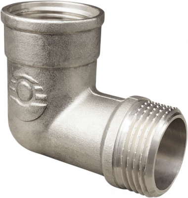 Угольник с переходом на наружную резьбу - угловой латунный никелированный фитинг, который позволяет соединить две трубы под прямым углом. Резьба – внутренняя/наружная, цилиндрическая трубная по ГОСТу 6357-81. Фитинги рассчитаны на рабочее давление (PN) 2,5 и 4,0 МПа и температуру транспортируемых сред от -20 до +150 °С.