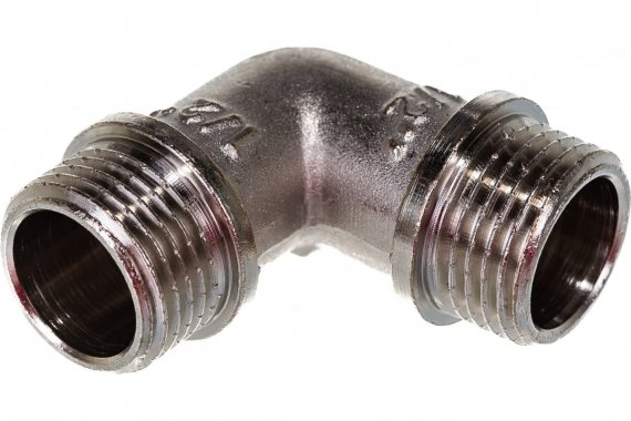 Угловой латунный никелированный фитинг позволяющие соединить две трубы под прямым углом. Резьба – наружная/наружная, цилиндрическая трубная по ГОСТу 6357-81. Фитинги рассчитаны на рабочее давление (PN) 2,5 и 4,0 МПа и температуру транспортируемых сред от -20 до +150 °С.
