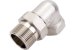 Угловой разъемный сгон с никелевым покрытием, смонтированный из двух частей с помощью накидной гайки (соединение типа «американка»).Резьба – внутренняя/наружная, цилиндрическая трубная по ГОСТу 6357-81. Детали изготовлены методом горячей объемной штамповки из высококачественной латуни марки ЛС 59-1. Уплотнительное кольцо – из синтетического каучука EPDM. Фитинги рассчитаны на рабочее давление (PN) 2,5 и 4,0 МПа и температуру транспортируемых сред от -20 до +150 °С.