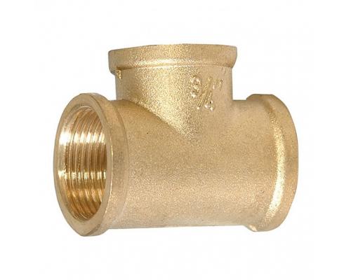 Тройник - латунный трехсторонний фитинг, равнопроходной, соединяющий три отрезка трубы, один из которых устанавливается перпендикулярно двум другим. Резьба - внутренняя/внутренняя/внутренняя цилиндрическая трубная по ГОСТу 6357-81. Фитинги рассчитаны на рабочее давление (PN) 2,5 и 4,0 МПа и температуру транспортируемых сред от -20 до +150 °С.