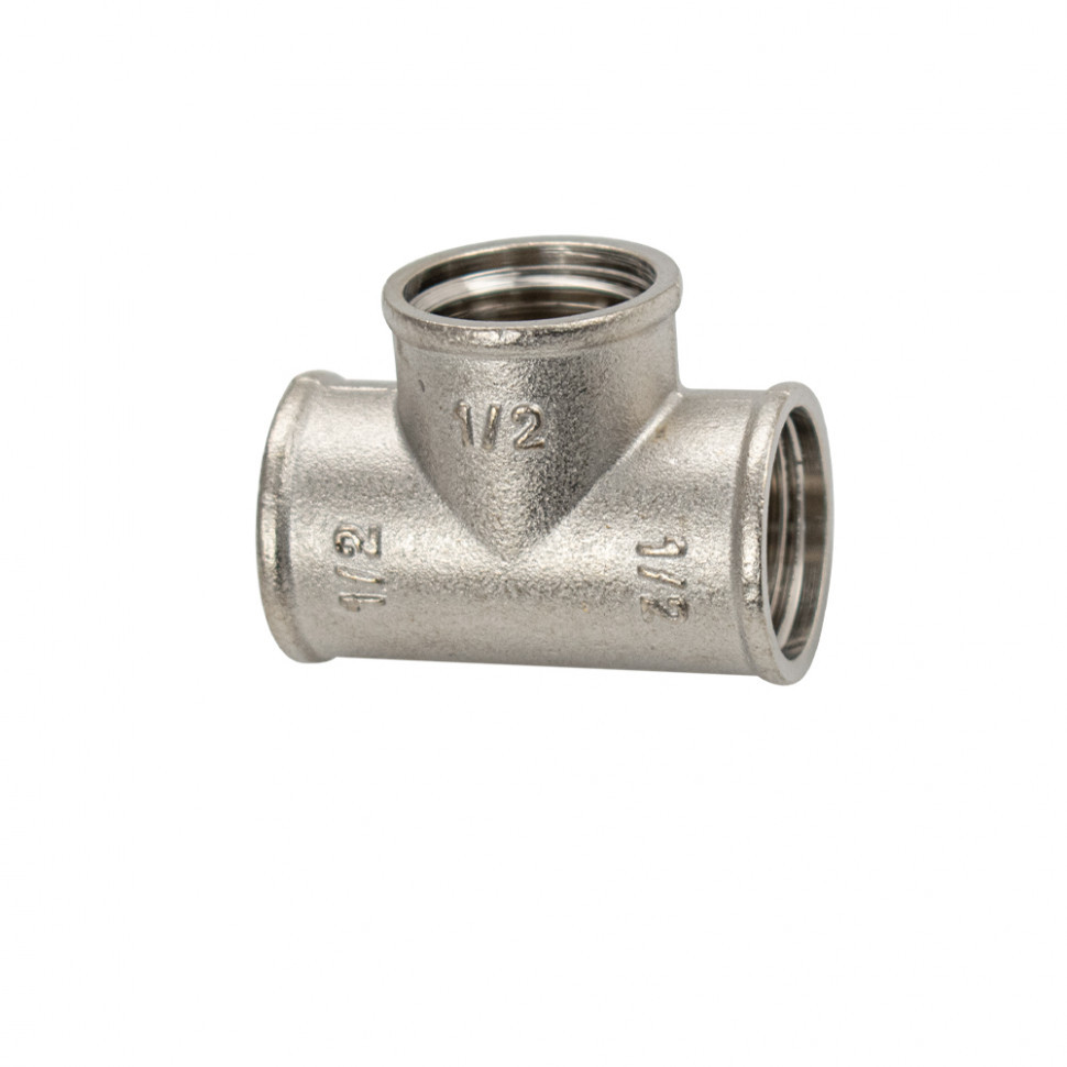 Тройник никелированный - латунный трехсторонний фитинг, равнопроходной, соединяющий три отрезка трубы, один из которых устанавливается перпендикулярно двум другим.Резьба - внутренняя/внутренняя/внутренняя цилиндрическая трубная по ГОСТу 6357-81. Фитинги рассчитаны на рабочее давление (PN) 2,5 и 4,0 МПа и температуру транспортируемых сред от -20 до +150 °С.