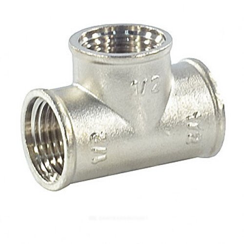 Тройник никелированный - латунный трехсторонний фитинг, равнопроходной, соединяющий три отрезка трубы, один из которых устанавливается перпендикулярно двум другим.Резьба - внутренняя/внутренняя/внутренняя цилиндрическая трубная по ГОСТу 6357-81. Фитинги рассчитаны на рабочее давление (PN) 2,5 и 4,0 МПа и температуру транспортируемых сред от -20 до +150 °С.