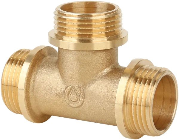 Латунный трехсторонний фитинг, равнопроходной, соединяющий три отрезка трубы, один из которых устанавливается перпендикулярно двум другим. Резьба - наружная/наружная/наружная цилиндрическая трубная по ГОСТу 6357-81. Фитинги рассчитаны на рабочее давление (PN) 2,5 и 4,0 МПа и температуру транспортируемых сред от -20 до +150 °С.