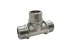 Латунный никелированный трехсторонний фитинг, равнопроходной/переходной, соединяющий три отрезка трубы, один из которых устанавливается перпендикулярно двум другим. Резьба - наружная/наружная/наружная цилиндрическая трубная по ГОСТу 6357-81. Фитинги рассчитаны на рабочее давление (PN) 2,5 и 4,0 Мпа и температуру транспортируемых сред от -20 до +150 °С.