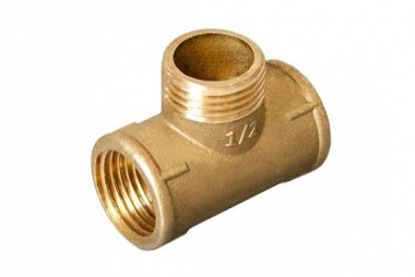 Латунный трехсторонний фитинг, равнопроходной, соединяющий три отрезка трубы, один из которых устанавливается перпендикулярно двум другим. Резьба - внутренняя/наружная/внутренняя цилиндрическая трубная по ГОСТу 6357-81. Фитинги рассчитаны на рабочее давление (PN) 2,5 и 4,0 МПа и температуру транспортируемых сред от -20 до +150 °С.
