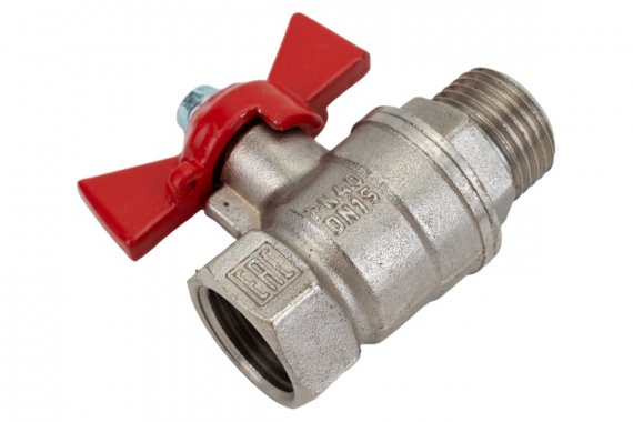 Кран шаровой N/P59 БИРКА для ВОДЫ 3/4" ВР/НР бабочка, латунный НИКЕЛИР-Й VALFEX 11Б27фт1М(72/18)