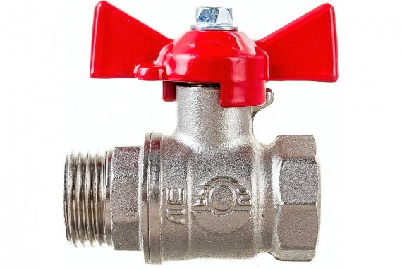 Кран шаровой латунный БИРКА OPTIMA для ВОДЫ 3/4" ВР/НР бабочка, НИКЕЛИР-ЫЙ VALFEX 11Б27фт1М (80/20)