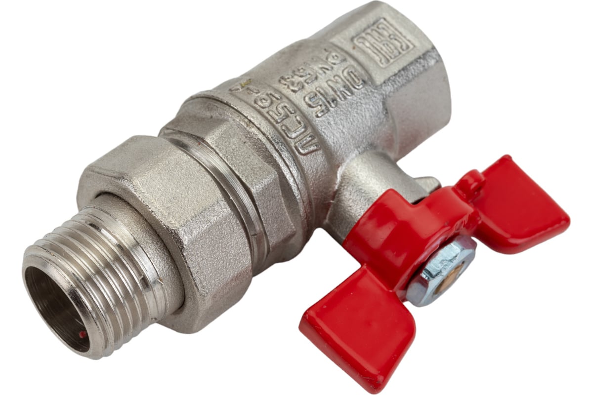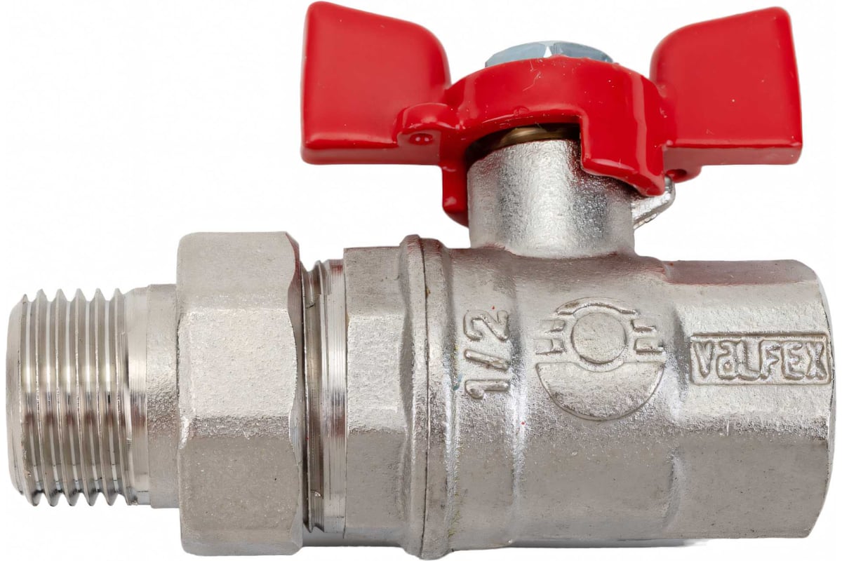 Кран шаровой лат. PREMIUM для ВОДЫ с америк. 1/2" ВР/НР, бабочка, НИКЕЛИР-Й VALFEX 11Б27фт1М(56/14)