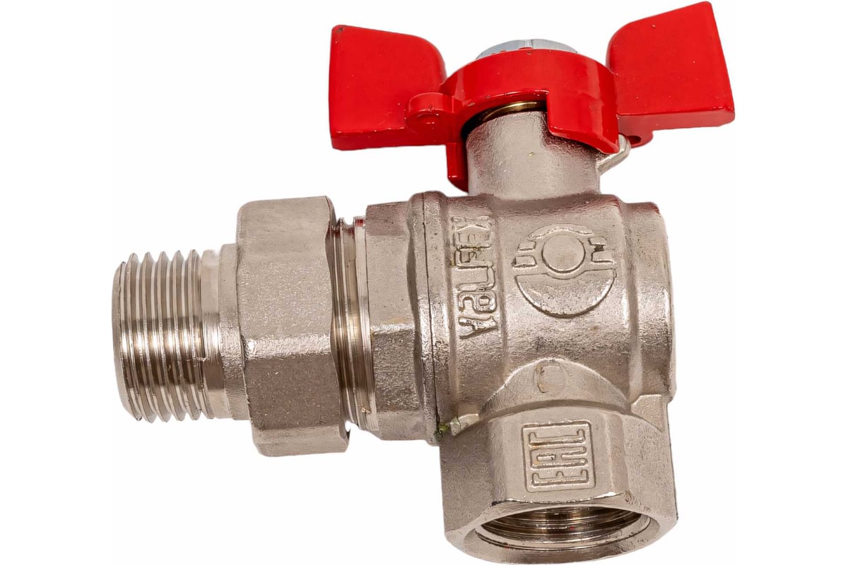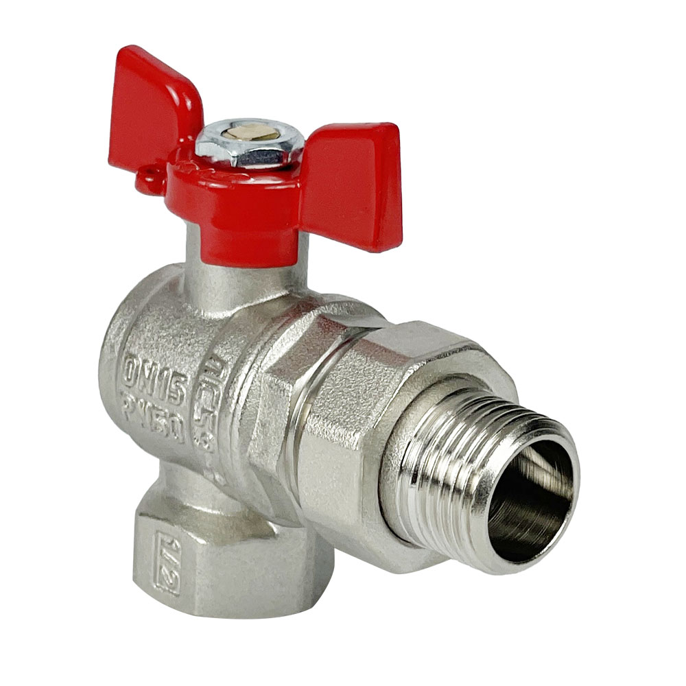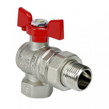 Кран шаровой лат. PREMIUM для ВОДЫ угл. с америк. 3/4" ВР/НР,бабочка,НИК-Й VALFEX 11Б27фт1М (40/10)