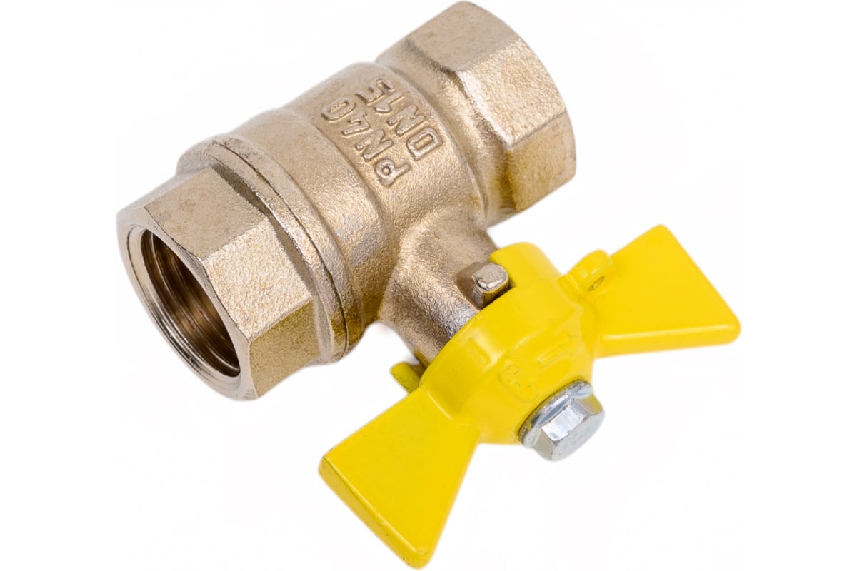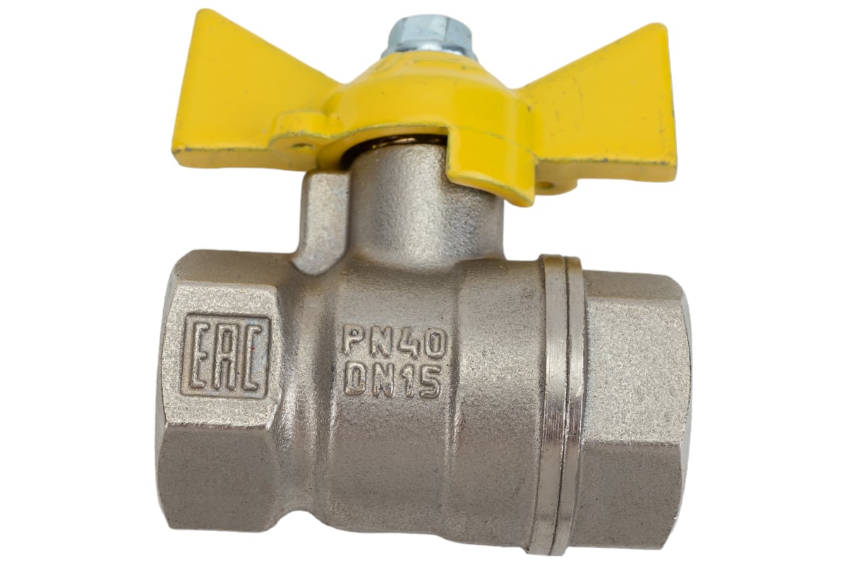 Кран шаровой N/P59 для ГАЗА 1/2" ВР/ВР ручка-бабочка, латунный НИКЕЛИР-Й VALFEX 11Б27фтМ (96/24)